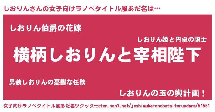 | 胡散臭い通販商品みたいなあだ名 | 『運命の人と巡り会える高級そうな壺…その名も「しおりん」』 |
