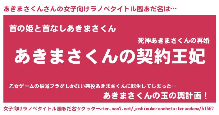 | 男性向けラノベタイトル風あだ名 | 『あきまさくんという概念が存在しない退屈な世界 』 |