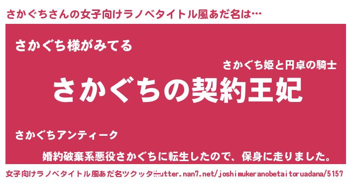 | 男性向けラノベタイトル風あだ名 | 『誰もが恐れるあのさかぐちが、ぼくの専属メイドになるようです。』 |