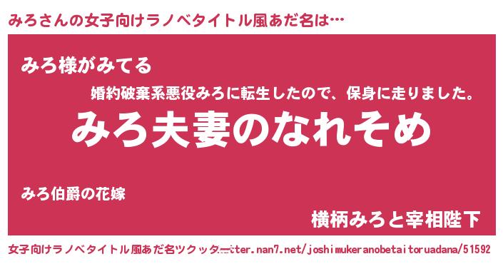 | ヘコむあだ名 | 『みろぷりん』『豆乳』『みろにゅー』 |