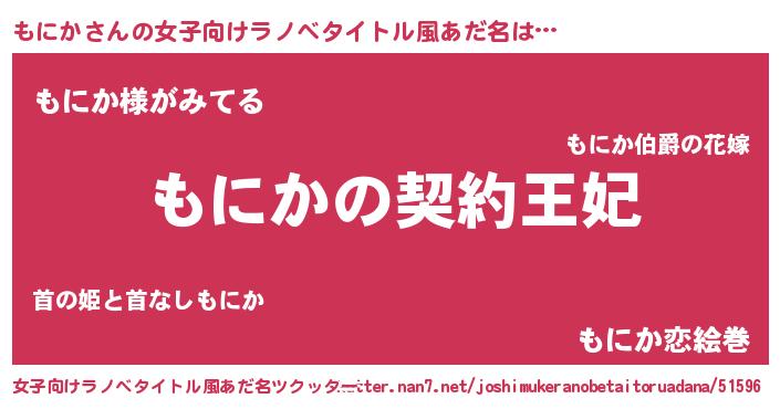 | 男性向けラノベタイトル風あだ名 | 『もにかという概念が存在しない退屈な世界 』 |
