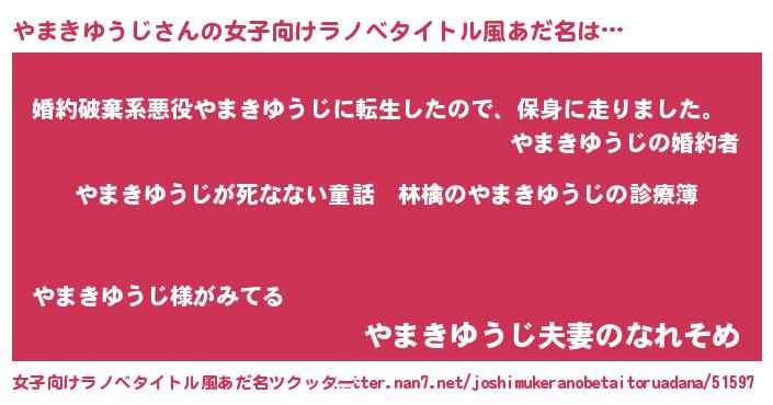 | 男性向けラノベタイトル風あだ名 | 『魔弾の王とやまきゆうじ』 |