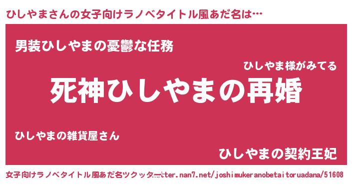 | ヒーロー風カッコイイあだ名 | 『慈愛の使者ひしやま』『ネオヒシヤマ』 |