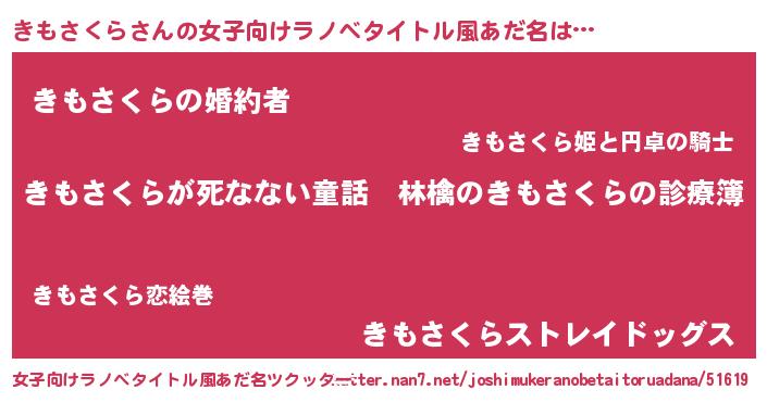 | 意味不明あだ名 | 『住所不定無職きもさくら(53歳)』 |