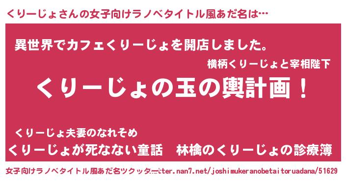 | 男性向けラノベタイトル風あだ名 | 『くりーじょ~年齢イコール彼女いない歴の魔法使い~』 |