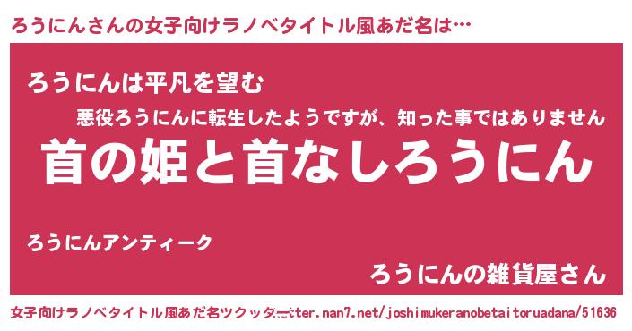 | ヒーロー風カッコイイあだ名 | 『暗黒騎士ロウ』『ウルトラろうにんマン』 |