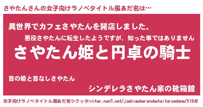 | 男性向けラノベタイトル風あだ名 | 『さやたんの憂鬱』 |