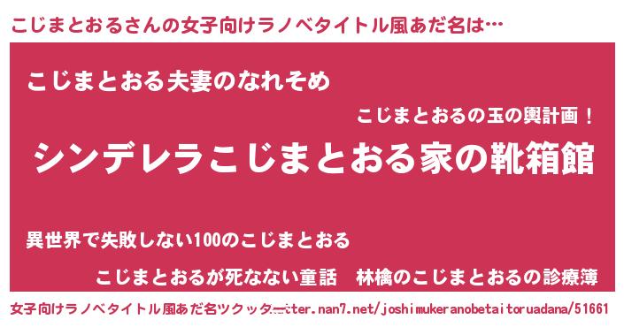 | 男性向けラノベタイトル風あだ名 | 『緋弾のコジマトオル』 |
