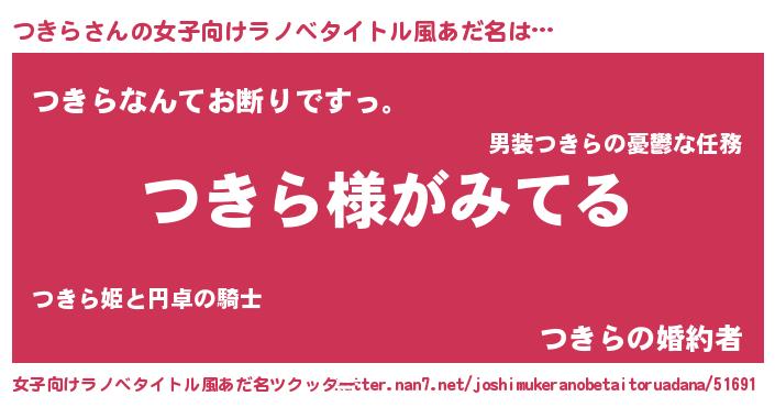 | ポケモン風あだ名 | 『ヒツキラ』『ツキセウス』 |