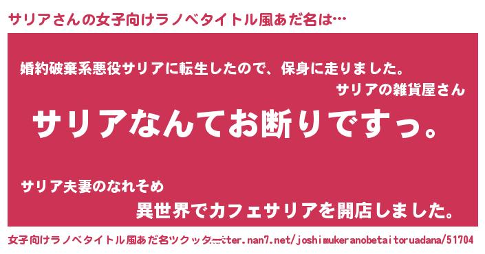| 男性向けラノベタイトル風あだ名 | 『魔法科高校のサリア』 |