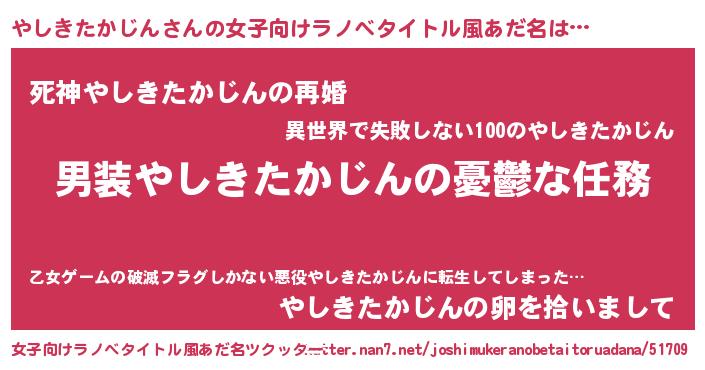 | ヘコむあだ名 | 『やしっぺ』『やしきたかじん(苦笑)』 |