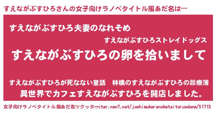 | 意味不明あだ名 | 『とにかく怪しいすえながぶすひろ』 |