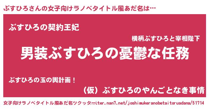 | ヘコむあだ名 | 『ぶすひろ(笑)』『ぶすもー』 |
