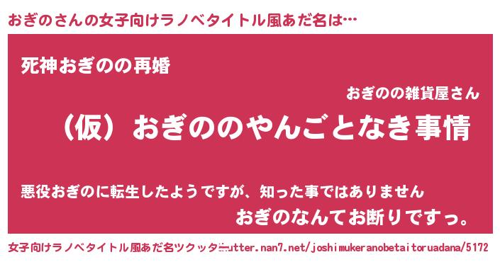 | ヘコむあだ名 | 『おぎにゅー』『酢こんぶ』 |