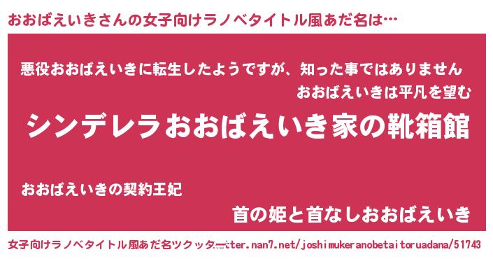 | 意味不明あだ名 | 『住所不定無職おおばえいき(79歳)』 |