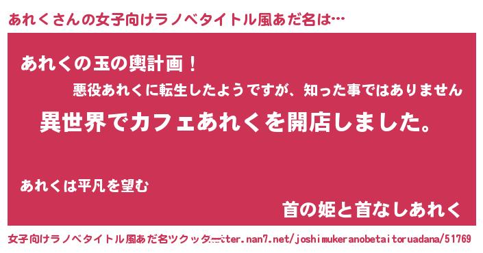 | 男性向けラノベタイトル風あだ名 | 『誰もが恐れるあのあれくが、ぼくの専属メイドになるようです。』 |