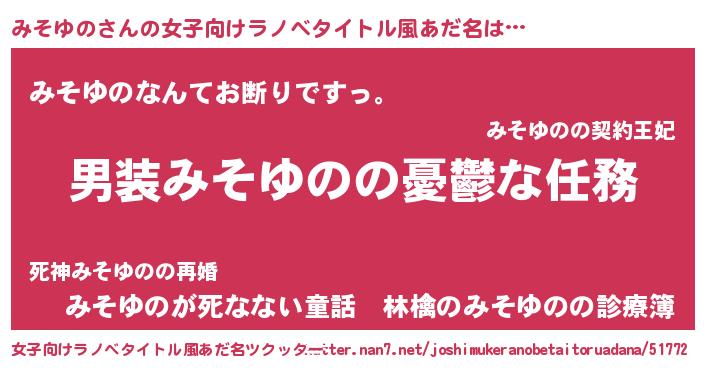 | 意味不明あだ名 | 『自称みそゆの』『永久保存みそゆの』 |