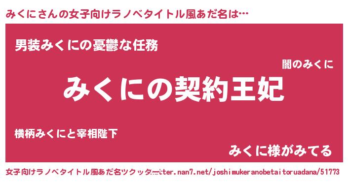 | 男性向けラノベタイトル風あだ名 | 『みくにという概念が存在しない退屈な世界 』 |
