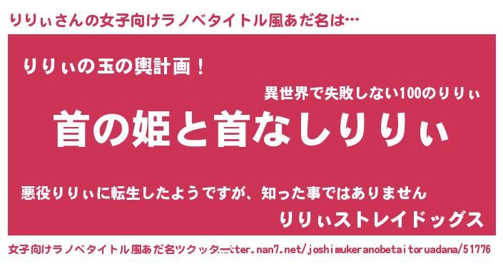 | 可愛いあだ名 | 『りりぷりん』『りりうちぇる』 |