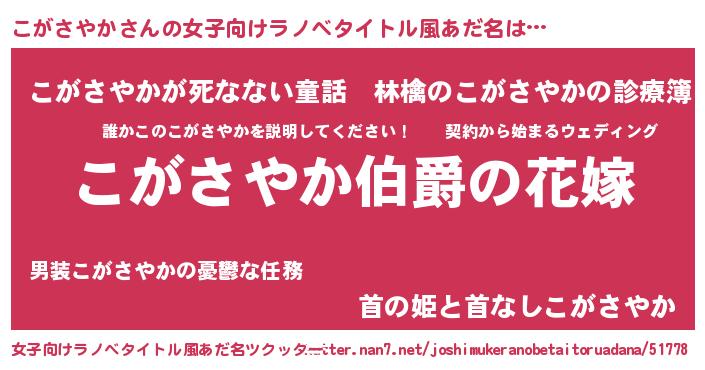 | 胡散臭い通販商品みたいなあだ名 | 『世界が平和になる高級そうな皿…その名も「こがさやか」』 |