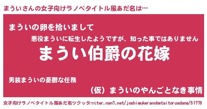 | 意味不明あだ名 | 『まういフォーエバー』『ペロリンまうい』 |