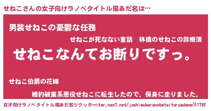 | 意味不明あだ名 | 『自称せねこ』『つくし科せねこ属』 |