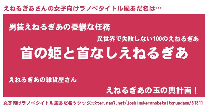 | 胡散臭い通販商品みたいなあだ名 | 『来世でも幸せになれる水素水…その名も「えねるぎあ」』 |