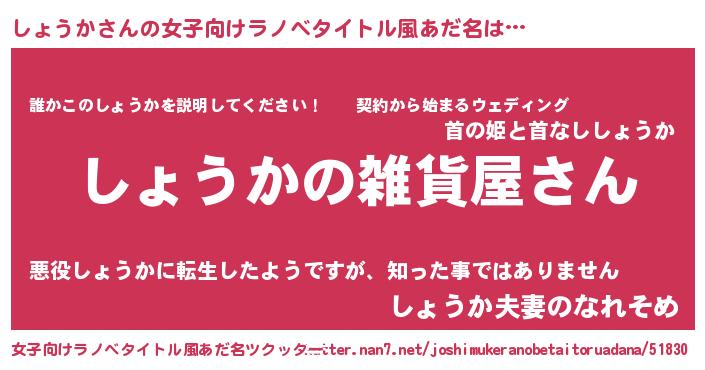 | 男性向けラノベタイトル風あだ名 | 『やはりしょうかの青春ラブコメはまちがっている 』 |
