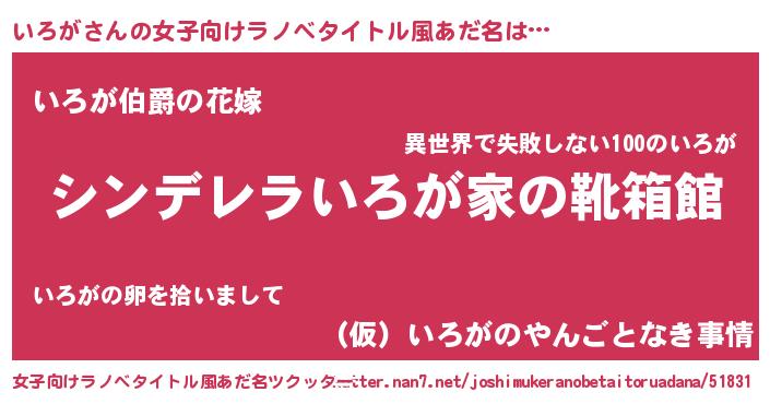 | 意味不明あだ名 | 『いろがフォーエバー』『ペロリンいろが』 |