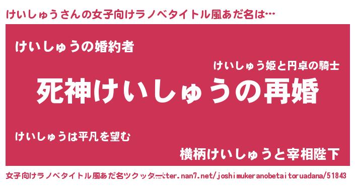 | ヒーロー風カッコイイあだ名 | 『天空の使者けいしゅう』『魔戒騎士ケイ』 |
