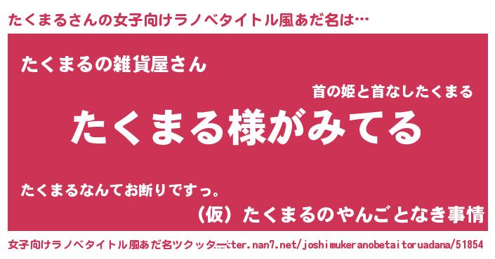 | ヒーロー風カッコイイあだ名 | 『天弓騎士タク』『ウルトラたくまるマン』 |