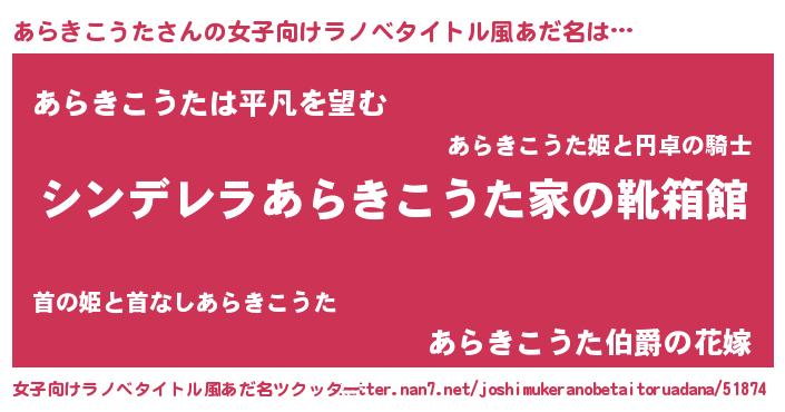 | 男性向けラノベタイトル風あだ名 | 『緋弾のアラキコウタ』 |