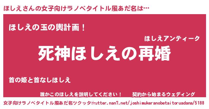 | ヒーロー風カッコイイあだ名 | 『慈愛の使者ほしえ』『スーパーホシエ』 |