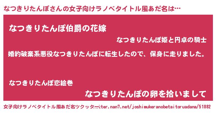 | 胡散臭い通販商品みたいなあだ名 | 『世界が平和になる高級そうな絵画…その名も「なつきりたんぽ」』 |