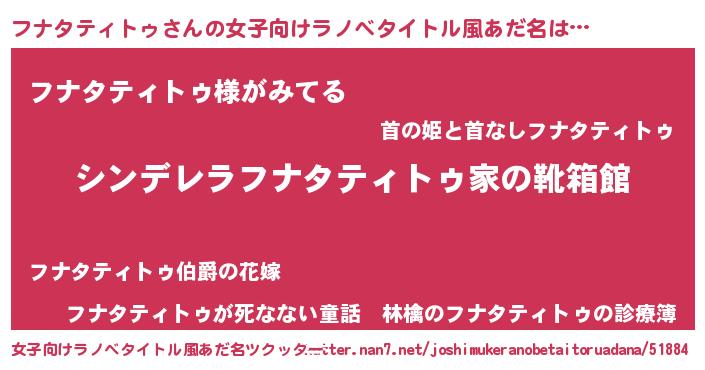| 男性向けラノベタイトル風あだ名 | 『緋弾のフナタティトゥ』 |