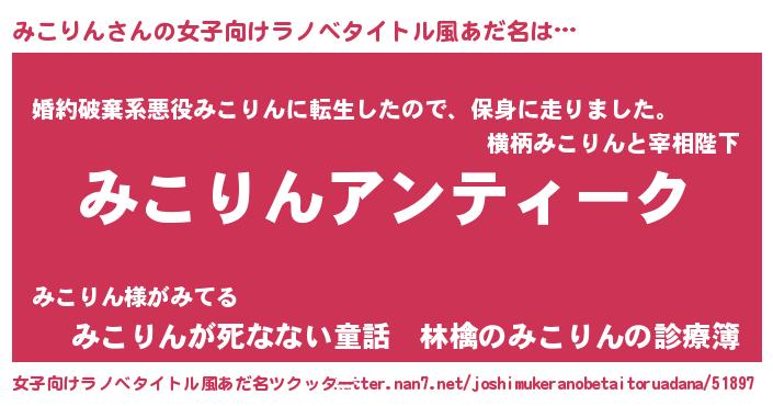 | 欧米人風あだ名 | 『ケンブリッジみこりん』 |