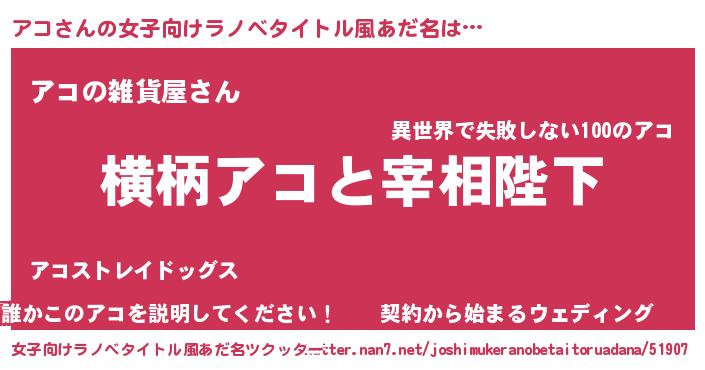 | ヘコむあだ名 | 『レバニラ』『アコにー』『アコ(笑)』 |