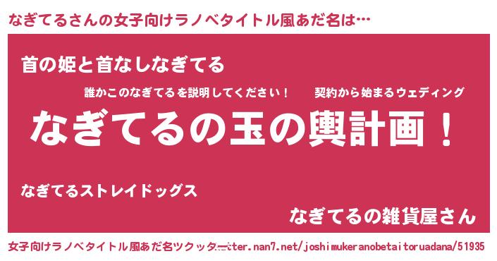 | ヒーロー風カッコイイあだ名 | 『ウルトラなぎてるマン』『仮面ナギダー』 |