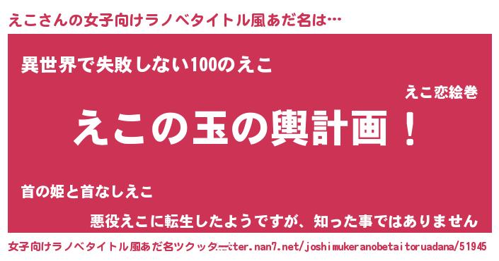 | 胡散臭い通販商品みたいなあだ名 | 『来世でも幸せになれる水素水…その名も「えこ」』 |