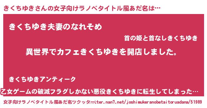 | 胡散臭い通販商品みたいなあだ名 | 『前代未聞の水素水…その名も「きくちゆき」』 |