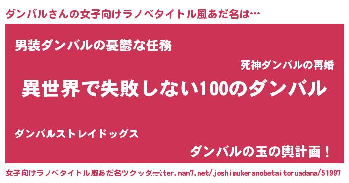 | 胡散臭い通販商品みたいなあだ名 | 『絶対に幸福をもたらす水素水…その名も「ダンバル」』 |