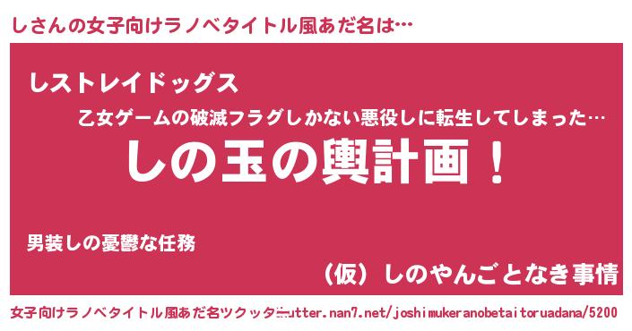 | 男性向けラノベタイトル風あだ名 | 『転生したらしだった件』『しの憂鬱』 |