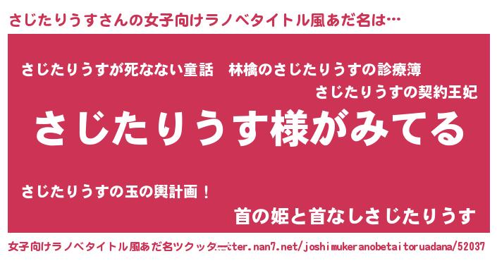| 男性向けラノベタイトル風あだ名 | 『さじたりうすの嫁は女の子じゃないと思った?』 |