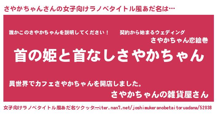 | 男性向けラノベタイトル風あだ名 | 『はたらくさやかちゃんさま!』 |