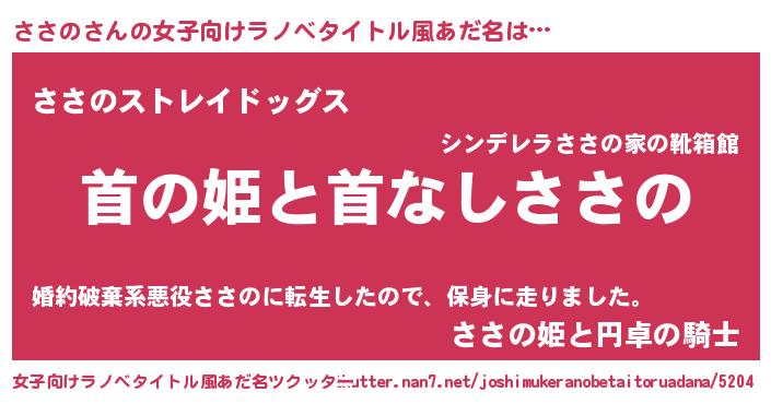 | 男性向けラノベタイトル風あだ名 | 『はたらくささのさま!』『緋弾のササノ』 |