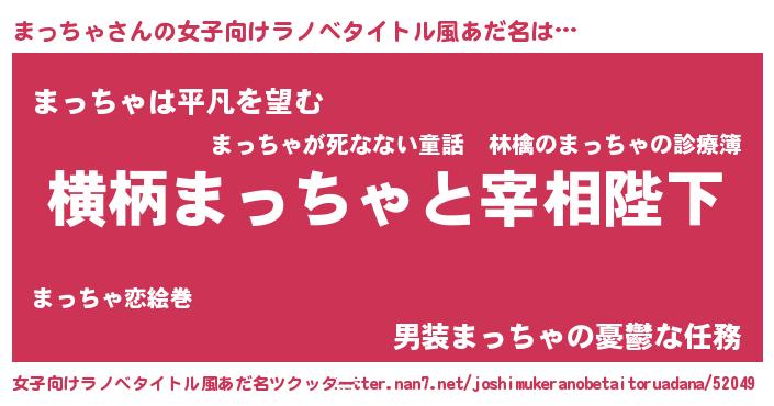 | 男性向けラノベタイトル風あだ名 | 『まっちゃに滅ぼされるだけの簡単なお仕事です』 |