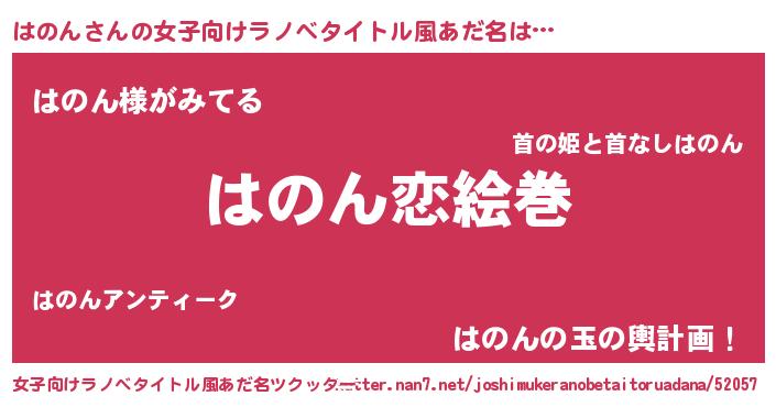 | ヒーロー風カッコイイあだ名 | 『慈愛の使者はのん』『幻影騎士ハノ』 |