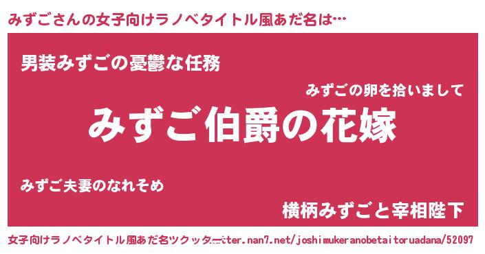 | 男性向けラノベタイトル風あだ名 | 『やはりみずごの青春ラブコメはまちがっている 』 |