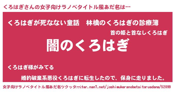 | 意味不明あだ名 | 『自称くろはぎ』『エリンギ科くろはぎ属』 |