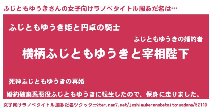 | 男性向けラノベタイトル風あだ名 | 『ふじともゆうきに滅ぼされるだけの簡単なお仕事です』 |